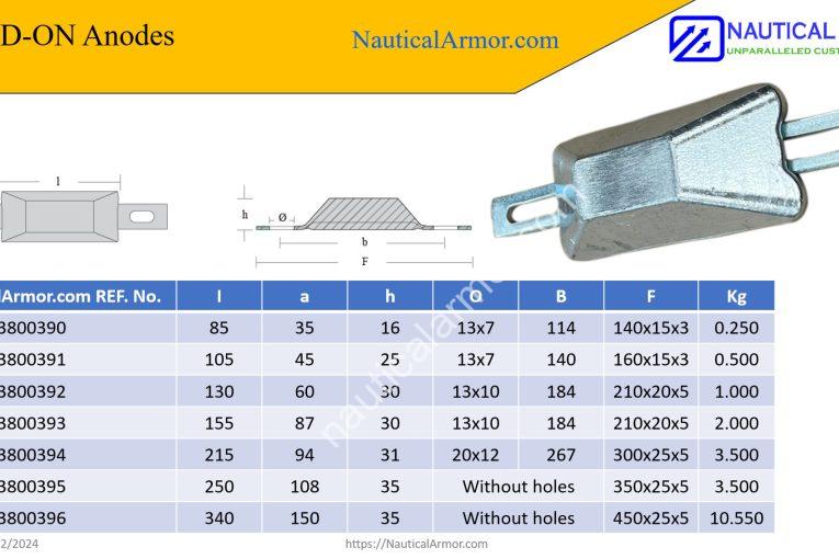 Our Nautical Armor Weld-On Sacrificial Anodes (Models 23800390–23800396 and 23800300–23800306) deliver maximum protection with 96% efficiency.